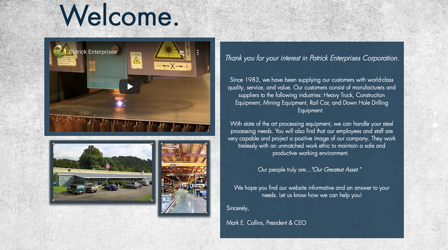 During my summer internship at the Patrick Enterprise Corporation, I created a new website and developed a Facebook page for the company.